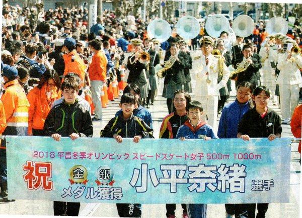 平昌五輪スピードスケート女子500mで金メダル、1000mで銀メダルを獲得した小平奈緒選手(31)=相沢病院=の凱旋祝賀パレードと報告会が本日、出身地の茅野市で行われ、 "世界の小平"を一目見ようと、県内内外から1万5000人が駆けつけた。小平選手は笑顔で大歓声と祝福の声に応えた。